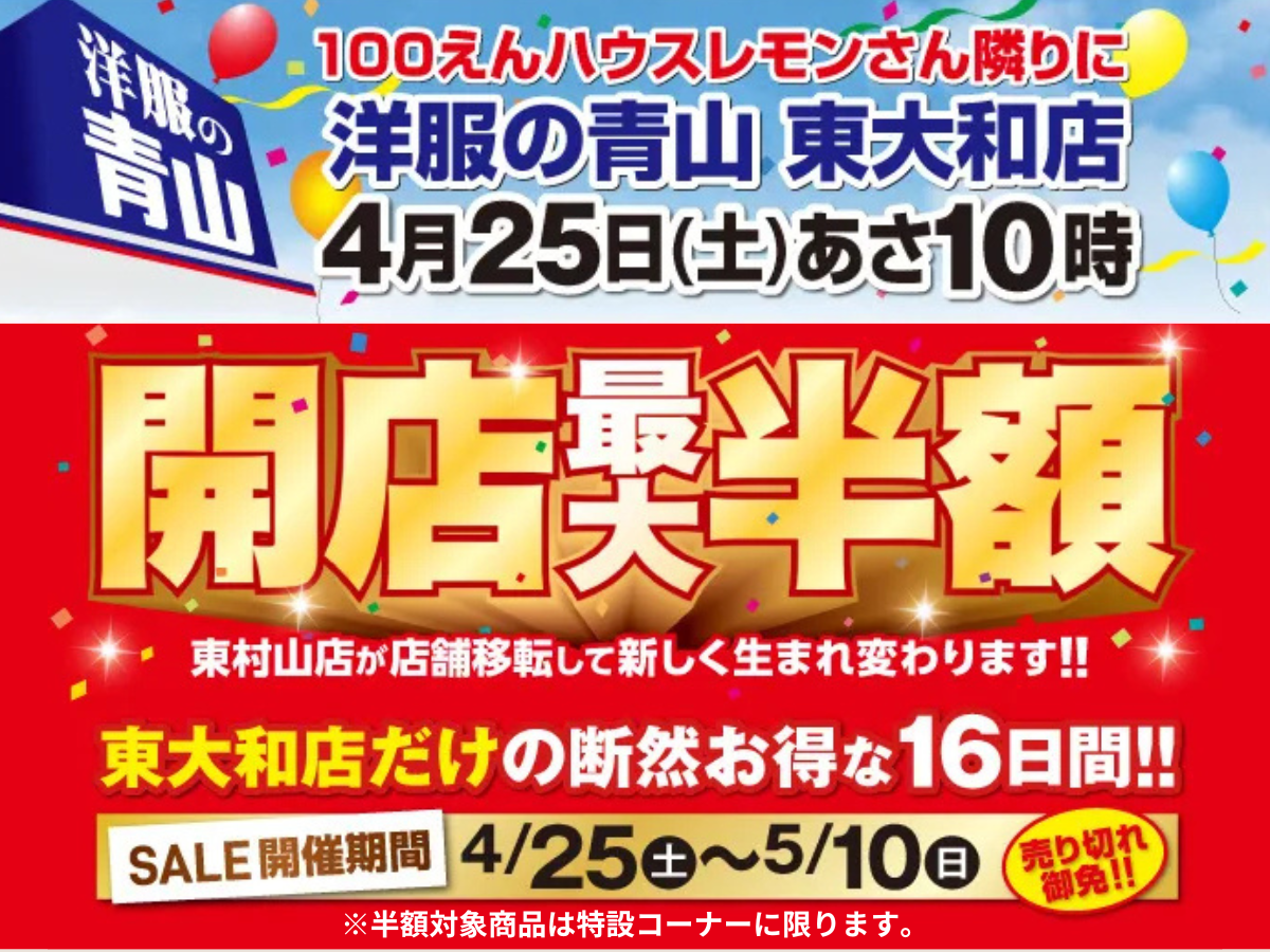 洋服の青山 所沢東店営業時間外 - 営業開始 10:30